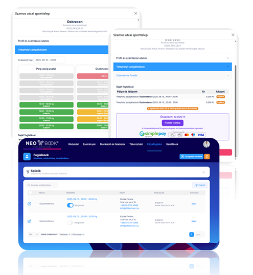 • Gestión de pagos (tarjeta de crédito – OTP SimplePay, pagos en el lugar)