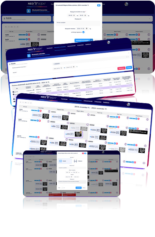 • Programación rápida de horarios con recurrencia: Tiempo registrado, Paga por ausencia, Vacaciones personales, Vacaciones de empresa, Baja por enfermedad, Festivo pagado, Permiso de maternidad, Permiso sin sueldo. ¡Un día sin entrada es un día de descanso!